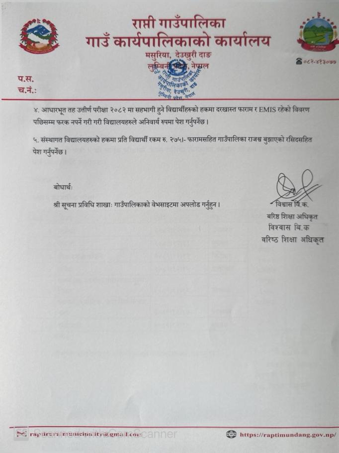» आधारभुत उत्तीर्ण परिक्षा (कक्षा ८), २०८२ आवेदन फाराम तथा प्रयोगात्मक अंक तालिका सम्बन्धी सूचना ।