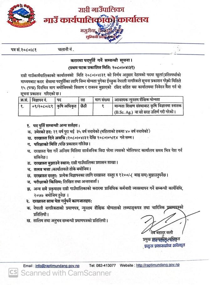 पदपुर्ति गर्ने सम्बन्धि सूचना ।
