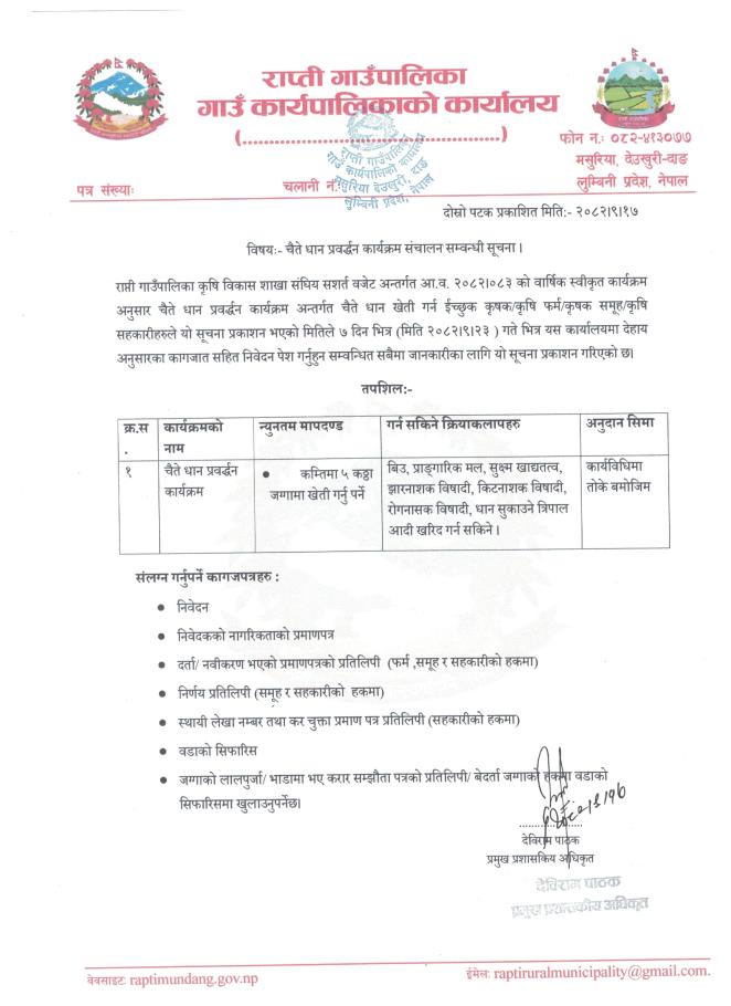 » चैते धान प्रवर्द्धन कार्यक्रम संचालन सम्बन्धी सूचना ।
