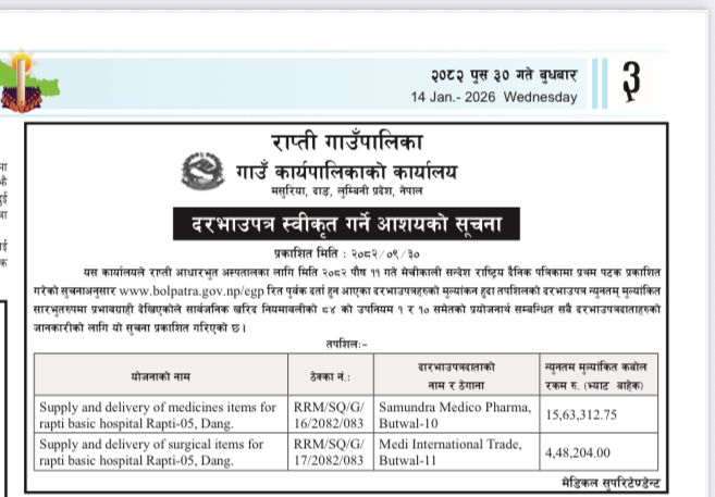 दरभाउ स्वीकृत गर्ने आशयको सूचना ।