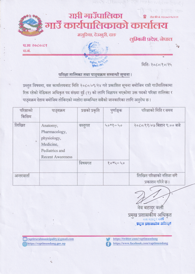 परिक्षा तालिका तथा पाठ्यक्रम सम्बन्धी सूचना ।