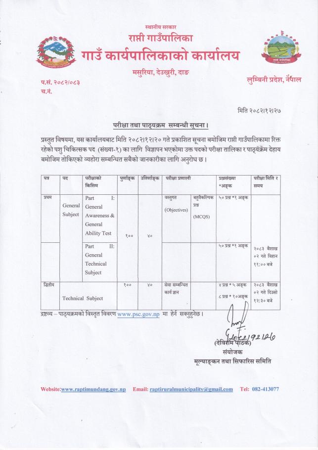 पशु चिकित्सकको परिक्षा पाठ्यक्रम सम्बन्धी सूचना ।