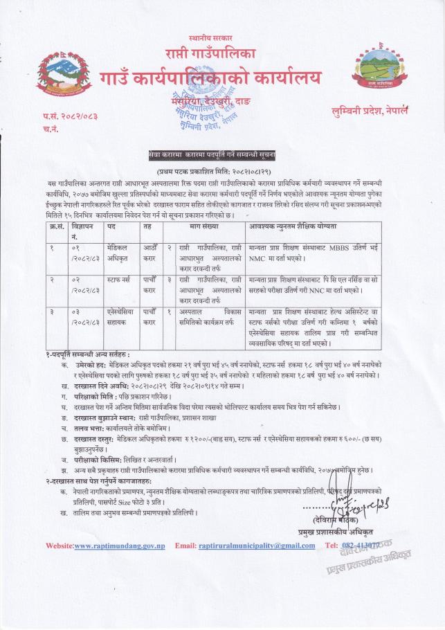 सेवा करारमा पदपूर्ति गर्ने सम्बन्धी सूचना ।